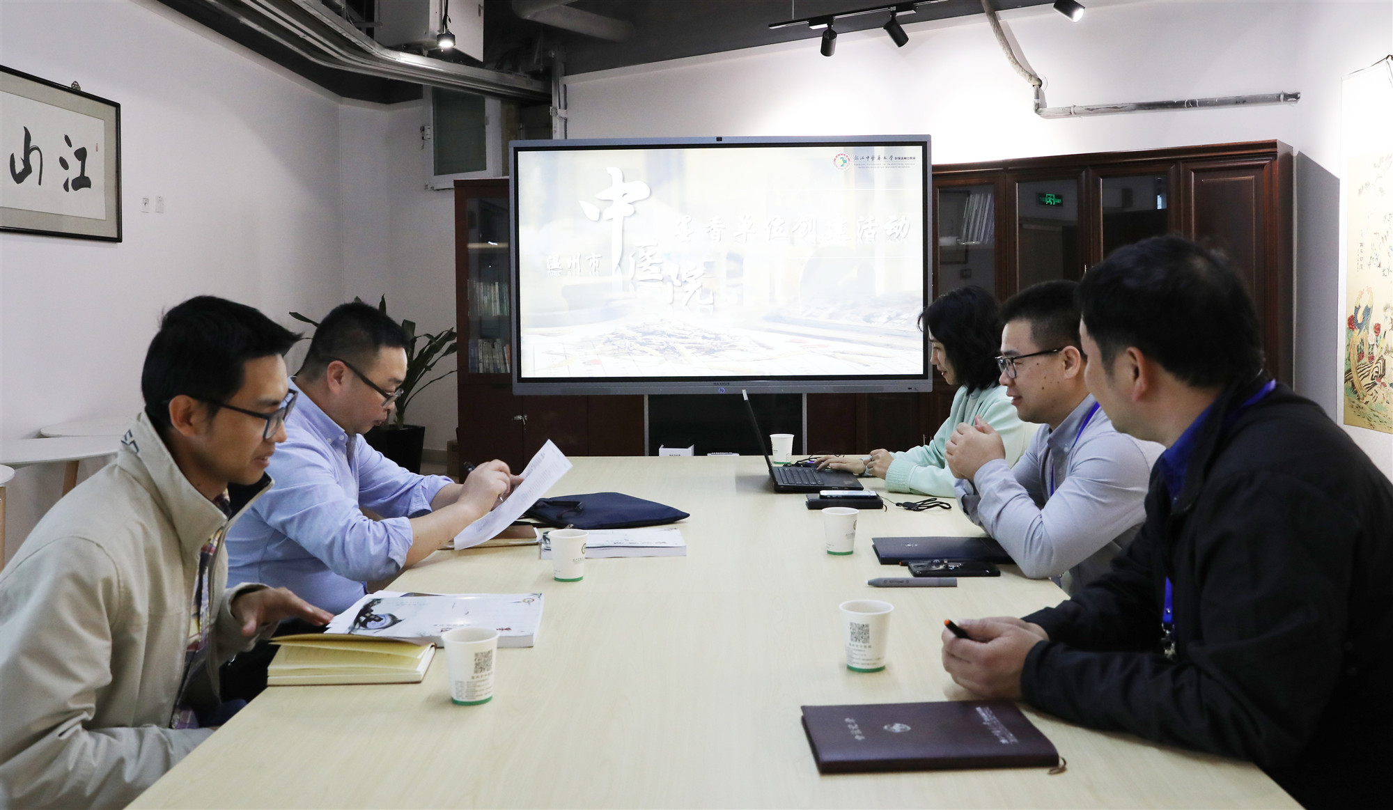自墨香单位创建工作开展以来,温州市中医院加快书画活动场地等墨香阵地建设,加强墨香文化的宣传和引导,给职工和患者带来了“有情怀、有温度”的医院文化,营造了浓厚的“书香医院”氛围。温州市中医院是一家拥有近百年历史的中医医院,在长期对中医药文化的宣传中,已经无形中引入了很多墨香元素,在此基础上,相关科室联合行动,营造了更为浓厚的氛围。
