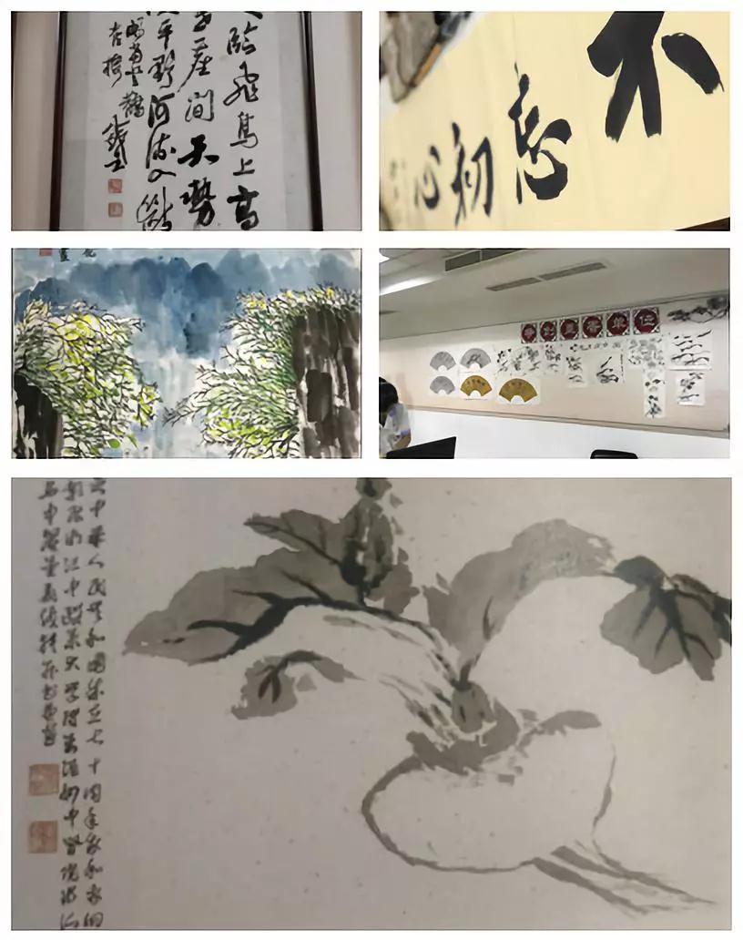 走进温州市中医院,无论是门诊区域,还是行政楼,都随处可见名家、职工的书画作品。在综合楼的一楼,一个小型的书画展有模有样的设立在公共区域,供职工、患者和家属鉴赏。而医院的职工之家,更是被职工布置成了常年的书画创作区和展示区,书画书籍、文房四宝应有尽有。