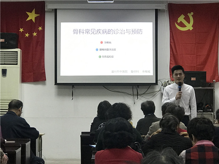 借此平台,温州市中医院推出了“长寿的秘诀”项目,借助中医师力量,向老百姓传播健康的中医养生方式,将中医保健知识逐渐渗透到市民的日常生活之中,让市民更科学、更有目的性的探寻长寿的秘诀。项目分为6期,先后开展食疗保健课、八段锦教学、穴位养生和肠胃讲座、经络拍打操及血压保健讲座、骨科常见疾病的诊治与预防等讲座,让居民更全面了解中医药文化,从而更好掌握到生活中长寿的秘诀。