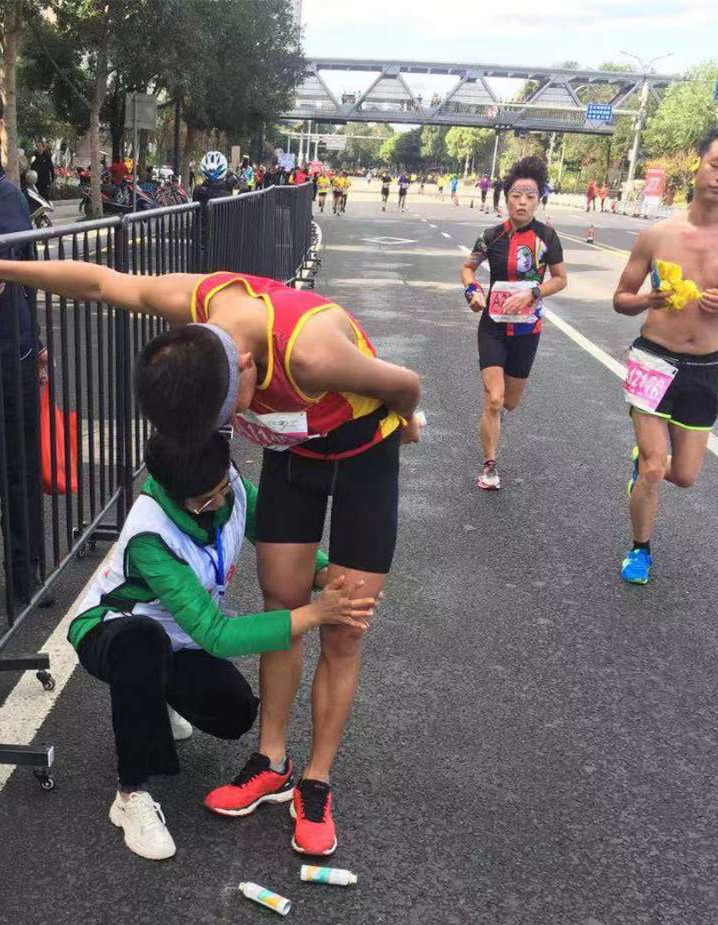 据统计,本次马拉松赛医疗保障任务,我院共治疗比赛选手1000余人次,主要是肌肉拉伤、小腿抽筋、足部扭伤、晕厥、皮肤擦伤、赛后拉伸等情况;救护车运送的较重伤员1人。
