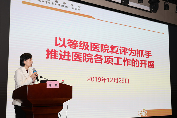 涂晓副院长做了《等级复评经验谈》的报告,分享杭州市中医院等级复评的宝贵经验。