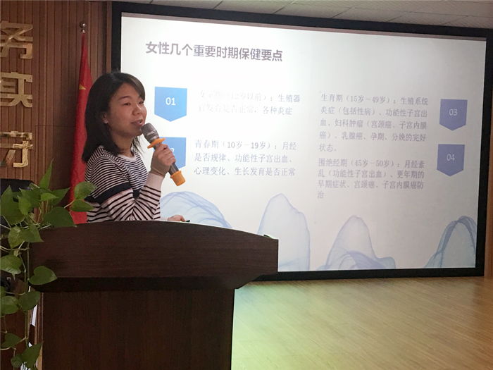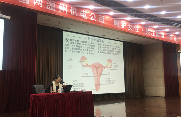 在水心柑橘社区,我院中医妇科颜晓钏主治医师,为社区妇女开展关于《女性养生保健》健康知识讲座;在温州科技职业学院,我院中医妇科胡欣欣副主任医师为在校女生开展《再见,青春期的烦恼》健康知识讲座;在温州市电力局,我院团委联合国网温州供电公司、图盛后勤分公司邀请中医妇科孙云主任为员工开展以“呵护女性,关注健康”为主题的大型讲座活动。