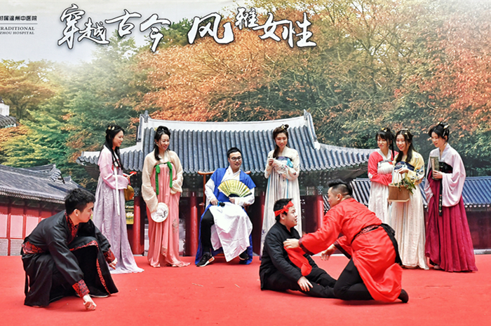 关爱患者,自然也要注重职工文化。我院工会为丰富女职工文化生活,调节身心,陶冶情操,开展了一场名为“穿越古今?风雅女性”的主题活动。十一支由院女职工组成的参赛队伍,着汉服、耍舞姿、唱诗赋,以东方女性的优雅古韵,充当汉服最美的模特。十一支队伍代表着是医院的十一个不同部门,她们在现场设置活动摊位,以礼券换礼品的方式,让更多的女职工参与到活动中,体会到台上台下高涨的节日温度。活动以宣扬中国传统文化,展示华夏礼仪文化为主旨,也为我院妇女节系列活动画上了圆满的句号。