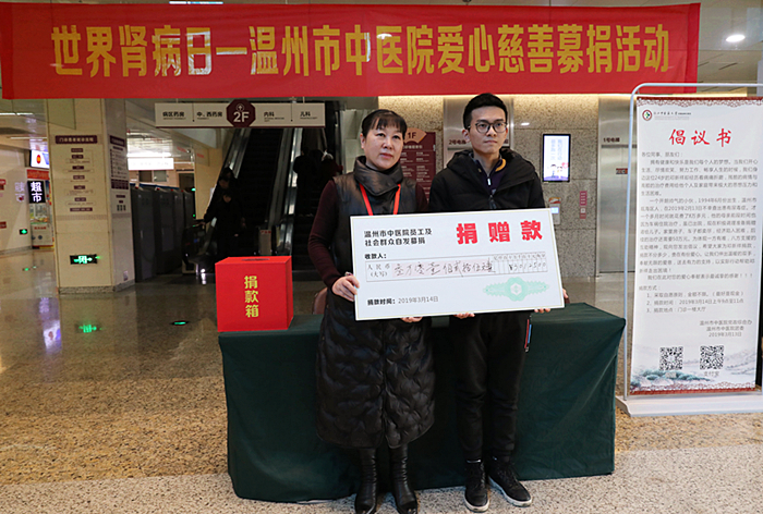 募捐活动现场,在院领导的带头下,职工积极响应,纷纷伸出援助之手,还有不少在医院就诊的患者,看到倡议后,也加入到献爱心的队伍中,短短2小时,现场就募得善款21000余元;我院还通过网络发布倡议书,号召职工捐款,据不完全统计,通过网络募得善款约7000余元;外加我院与温州市慈善总会合作的“爱心温州.净血护肾救助项目”善款3900元,此次募捐活动共为小邓募集善款32000余元。