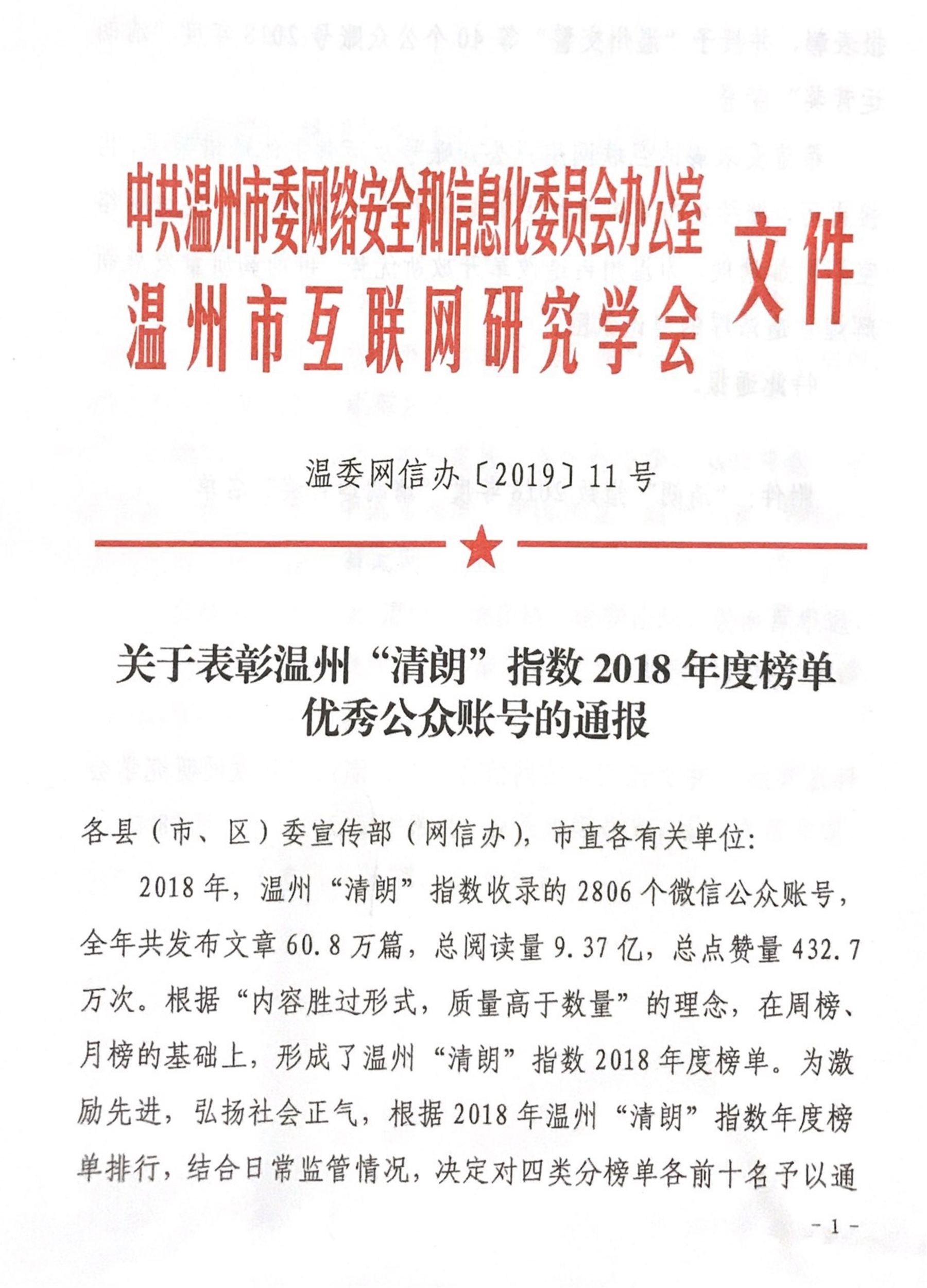 温州微信公众号“清朗”指数