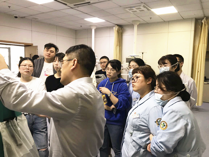 下午3点,培训开始。厂家工程师俞刚一边在实机上直接操作演示,一边结合操作向大家讲解,内容包括设备的操作使用、使用注意事项等几个方面。理论与实际相结合的培训方式,加深了大家对这款设备使用方法的掌握,同时点燃了现场的学习气氛。临床医护人员也纷纷提出平时在使用这款医疗设备时遇到的一些疑问,厂家工程师俞刚都给出了细致、耐心的解答。下午3点40分,厂家工程师讲解部分结束,设备科工程师给参加培训的医护人员分发了相关的试题,现场对大家进行了考核,这既巩固了此次培训效果,又及时指出培训后还存在的问题。下午4点,活动正式结束,大家仍意犹未尽。