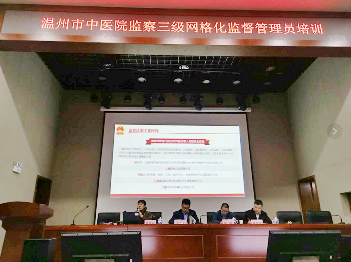 2019年4月3日下午,温州市中医院在综合8楼会议室举行了监察三级网格化监督管理员培训会,会议由朱文宗院长主持,院纪委委员及网格监督管理员参加会议。