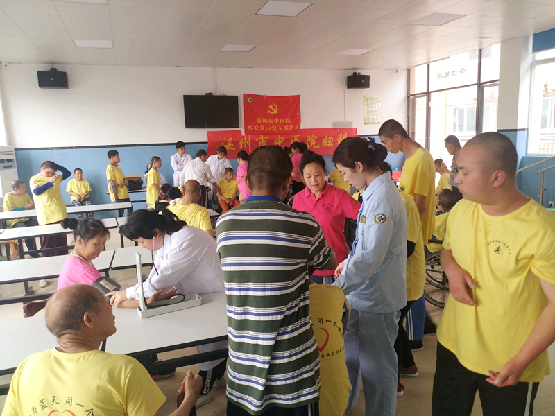 2019年5月17日下午,温州市中医院水心景山党支部党员专家团队一行人,深入龙湾区残疾人托养中心结对帮扶,开展义诊健康咨询活动。