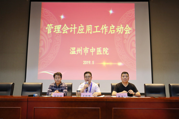 为推动管理会计在医院的有效应用,提升医院精细化管理水平,2019年5月30日下午,在我院六虹桥院区八楼报告厅隆重举行了温州市中医院管理会计应用工作启动会。我院党委书记王庆来、院长朱文宗等院领导班子成员、总会计师曹文瑛、全院中层干部及合作院校杭州电子科技大学易颜新教授、李冬姝老师等专家团队成员参加了此次启动会。会议由我院党委书记王庆来主持。