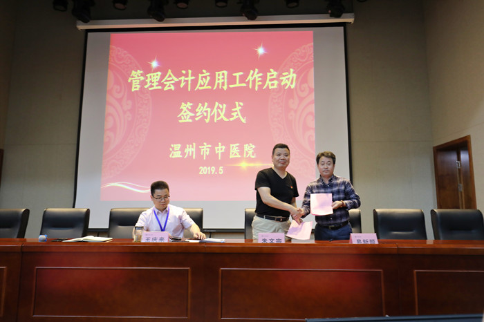 最后,院长朱文宗和易颜新教授分别代表院方和杭州电子科技大学签订了温州市中医院管理会计项目合作协议。