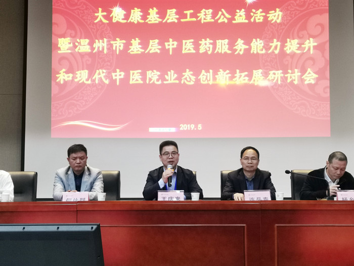 为推进《中医药法》的贯彻实施,树立大健康、大卫生理念,研讨基层中医药发展和医养联合体建设,提升基层中医药服务能力,5月9日,由中国中医药信息学会基层健康服务分会、温州市中医药学会主办,我院承办的大健康基层工程公益活动暨温州市基层中医药服务能力提升和现代中医院业态创新拓展研讨会在我院六虹桥院区召开。此次研讨会聚焦健康中国战略的贯彻实施和中医药健康事业的发展,邀请众多业界学者大咖杏林论道。中国中医药信息学会基层健康服务分会会长、大健康中医药促进联盟连岳寿理事长,市卫健委中医处杨乡雪处长,北京中医药大学教育技术中心靳振洋主任,上海中医药大学针灸推拿学院推拿治疗教研室原主任李征宇教授,杭州市名中医、浙江中医药大学洪佳璇教授,北京师范大学中国医疗卫生政策研究院何休群研究员,我院党委书记王庆来,院长朱文宗等领导和嘉宾出席或参加活动。温州地区中医药界同仁、我院相关科室人员共200多人参加了活动。
