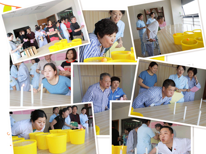 活动现场热闹非凡,患者及家属、病房的阿姨、医务工作人员都参与到活动中去。趣味活动分知识竞猜、吹蜡烛,吹乒乓球。参与者在完成知识竞猜后,进入游戏环节,进行吹蜡烛和吹乒乓球,大家都铆足了劲,似乎“吹”跑了疾病的烦恼。活动过程中,每个参与者都洋溢着快乐的笑容,现场一片其乐融融。