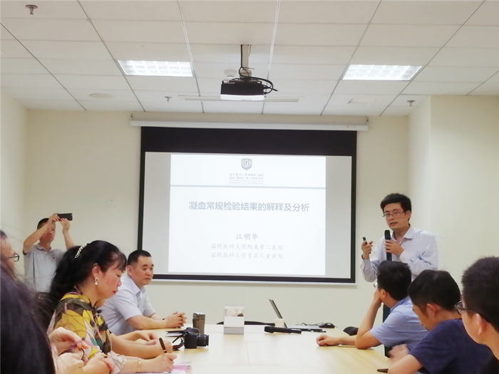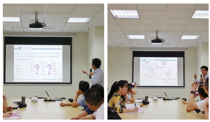 为了更好地提高科里的业务水平,检验科会定期开展科室内部的业务学习,还会邀请检验各领域相关的大咖级人物为大家作精彩的理论与实践与临床相结合的专题讲座,本次红五月的学习,我们有幸请到了来自温州医科大学附属第二医院检验科的江明华主任,为大家带来人体凝血系统疾病的相关研究和最新进展的讨论。