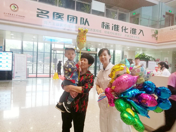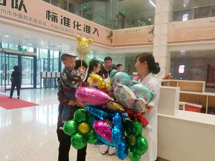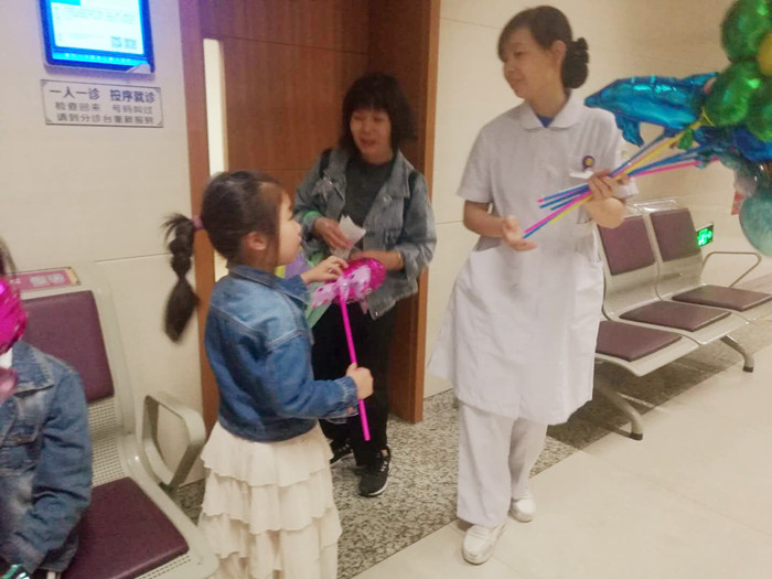 小朋友们一进医院大门就收到门诊护士送的彩色气球,有小花的,也有小动物的,各种各样的形状让每位小朋友都绽放了开心的笑容。