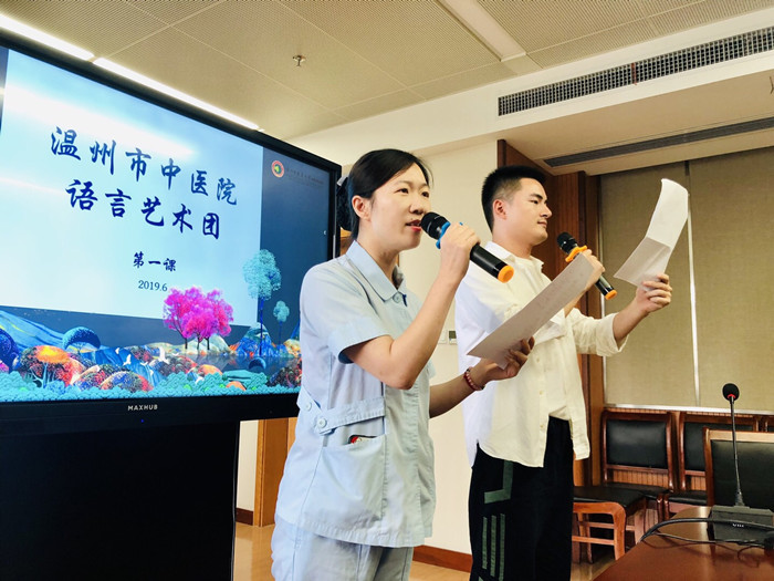 为深入学习贯彻党的十九大精神,推进全民阅读活动的开展,提高医院职工文化素养,促进培养朗诵新生力量和审美水平,6月3日中午,温州市中医院语言艺术培训班在综合楼507会议室正式开班,本次培训班特邀温州市广播电台著名播音员丹音老师授课,来自我院各个科室的20余位朗诵爱好者积极参加,共同学习朗诵艺术。