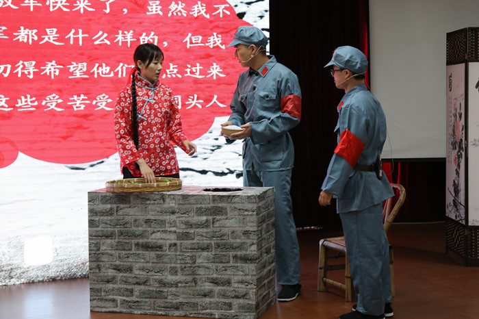 水心景山院区党支部选送的《生的伟大,死的光荣》完美地演绎了一位满腔热血的革命者刘胡兰被敌人逮捕后从容面对铡刀的场景,表现出共产党员坚贞不屈的革命气节;
