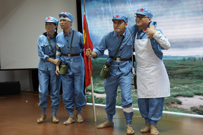 内科党支部选送的《金色的鱼钩》叙述了长征途中炊事班班长忠于革命、舍己为人的崇高品质,生动逼真的表演感染了在场所有人;