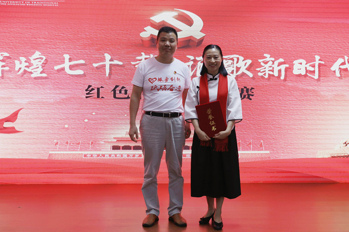 大士门院区党支部《我的父亲》和门诊党支部《薪火相传》荣获优胜奖,离退休党支部《没有共产党就没有新中国》荣获特别奖