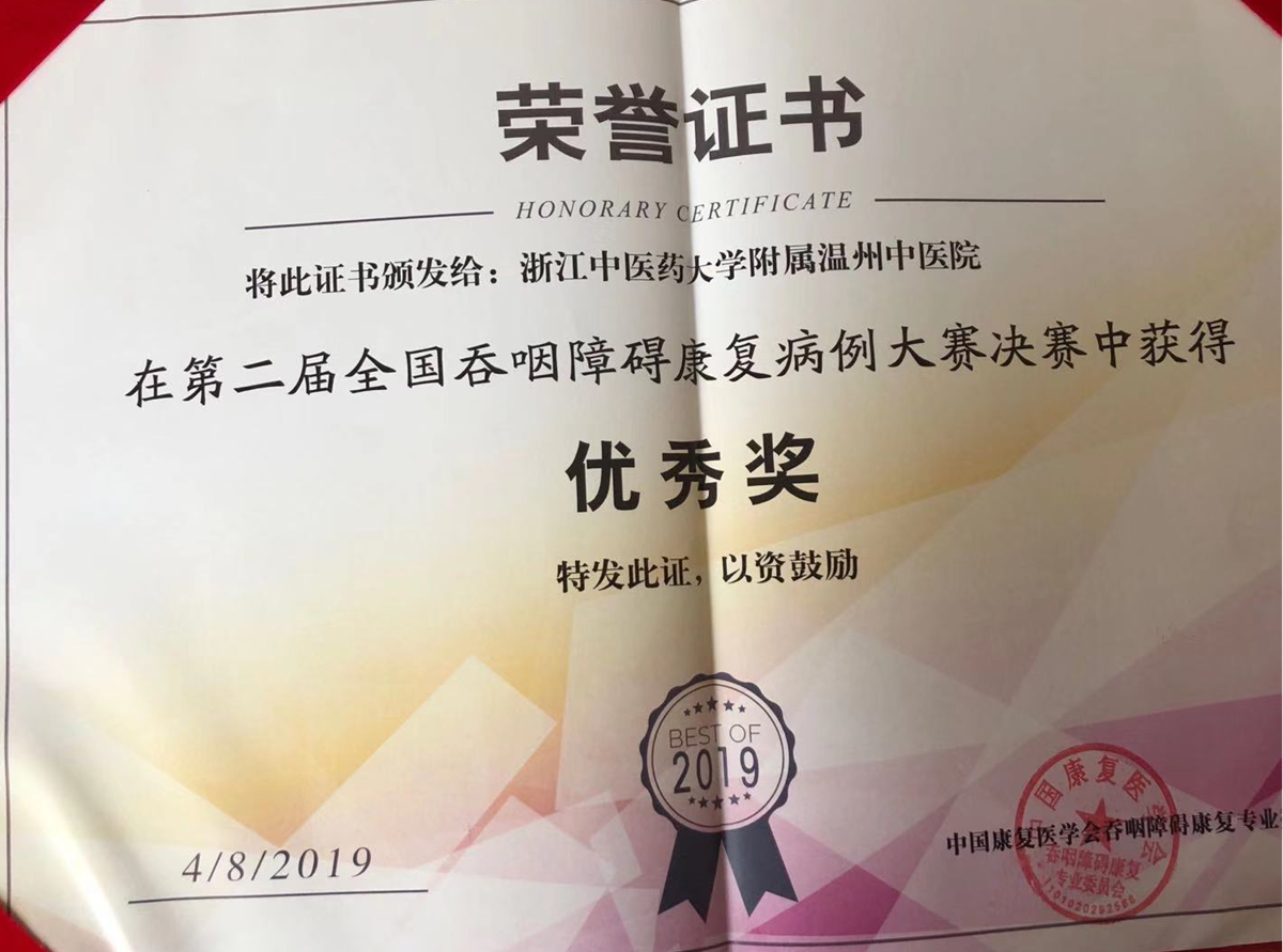 本着“认真、负责、客观、公正”的原则,本次病例大赛从治疗方案设计、专业难度和规范性等多方面进行评判,历经一整天的病例汇报及专家评委提问,我院代表队凭借规范性的吞咽障碍诊断、评估、护理及康复治疗,荣获第二届全国吞咽障碍康复病例大赛总决赛优秀奖!
