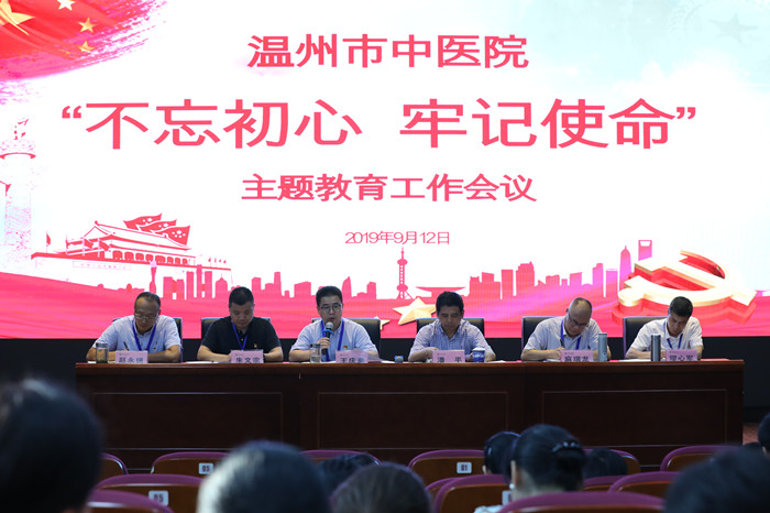 为深入学习贯彻习近平总书记关于“不忘初心、牢记使命”主题教育重要指示精神,认真贯彻落实中央和省、市委、市卫生健康委党委关于“不忘初心、牢记使命”主题教育决策部署,9月12日下午,我院在六虹桥院区召开温州市中医院“不忘初心、牢记使命”主题教育工作会议。市卫生健康系统“不忘初心、牢记使命”主题教育第三巡回指导组潘平组长出席会议并讲话,我院党委书记王庆来、院长朱文宗、其他党政领导班子成员、中层干部及各党支部书记、委员参加会议。