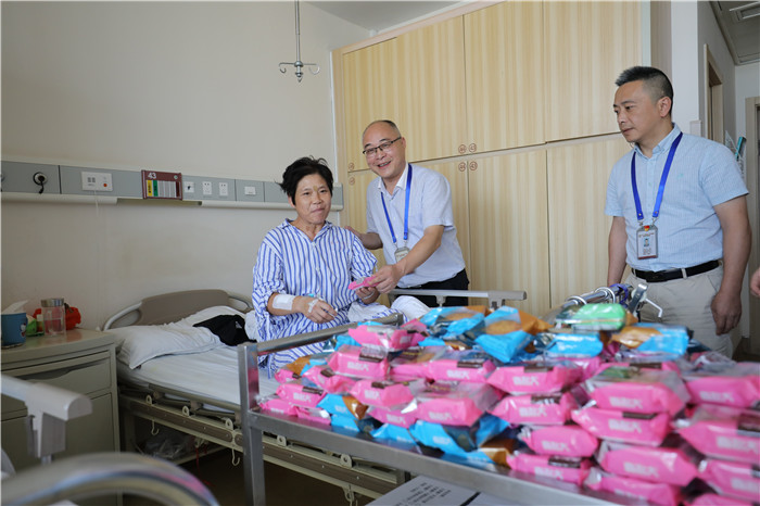 见到麻副院长一行在分发月饼,12楼骨科的王阿婆很高兴,特意整理了衣服,拿梳子梳了头发,笑容满面的接过月饼,并由衷的表达了感谢,“医院把我们当家人,真是太高兴了!”