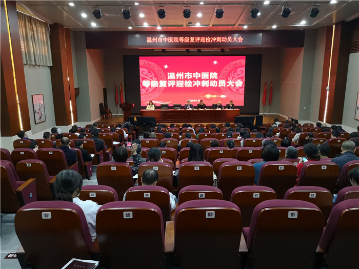 1月2日,温州市中医院等级复评迎检冲刺动员大会在报告厅召开,院领导班子及全体中层干部参加。在党委书记王庆来、院长朱文宗的部署及号召下,等级医院评审准备工作正式进入倒计时,全院员工要以评审准备为契机,朝着共同的目标,以问题为导向,凝聚力量、正视困难、趁势而上,为老百姓提供更高水平的服务,打造三甲中医医院的标杆!