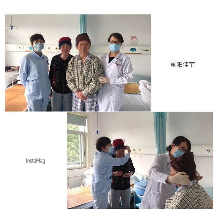 依照老年患者的名单,依次敲开病房的门。一声简短的“重阳节快乐”,配上我们真诚的笑容,打开了他们的心扉,温暖也由此起航。亲手为每一位老年患者佩戴上毛线手套或帽子,并以图文并茂的方式向他们及陪护讲解低温烫伤的预防,让他们收获惊喜的同时也收获知识。