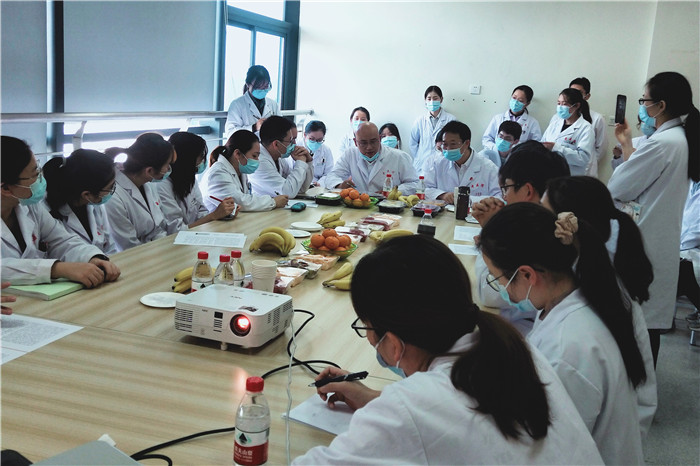 查房后回到示教室,两位教授根据病人病情,进行辨证论治开处方,并做饮食指导。