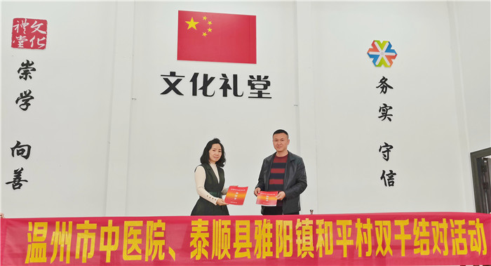 11月12日,温州市中医院联合泰顺县中医院走进泰顺县雅阳镇和平村,开展“双千结对”活动,通过捐款、义诊、送药等形式把温暖带进村民心里。