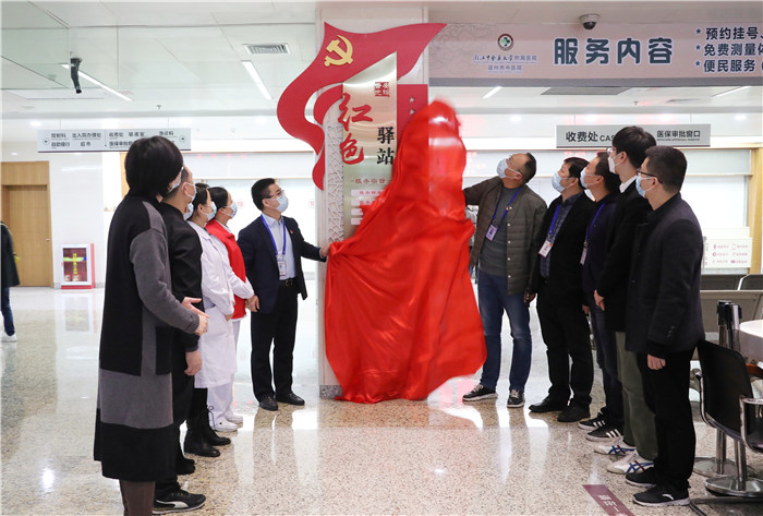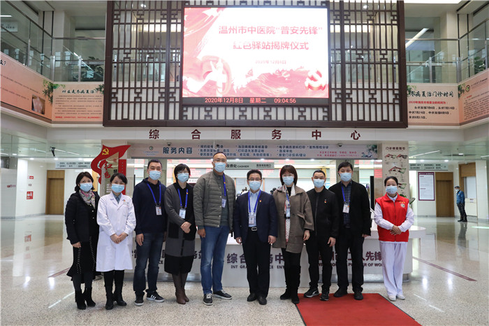 12月8日上午,温州市中医院“普安先锋”红色驿站揭牌仪式在六虹桥院区举行。红色驿站的正式启动进一步提升了医院的服务效能,有利于构建医院基层党建工作的新格局。医院党委书记王庆来,党委委员、副院长赵永强及各党管科室负责人、站点党支部书记参加揭牌仪式。