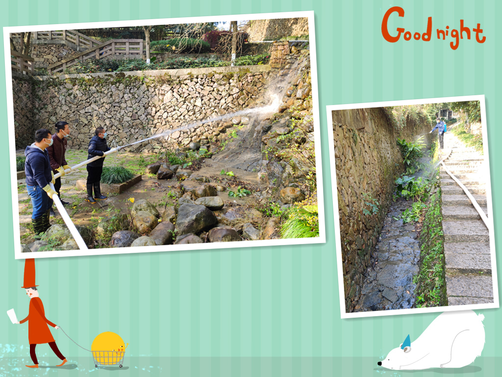 疫情期间物业公司配置专人进行每日消毒,在消毒等级、措施、频次、流程等进行规范登记。同时做到严格规范医疗垃圾、生活垃圾的收集、转运以及处置,避免医疗垃圾造成二次污染。并且对院区围墙外水沟也进行清理消毒,“邻居安全我放心”,确保病毒无处躲藏。
