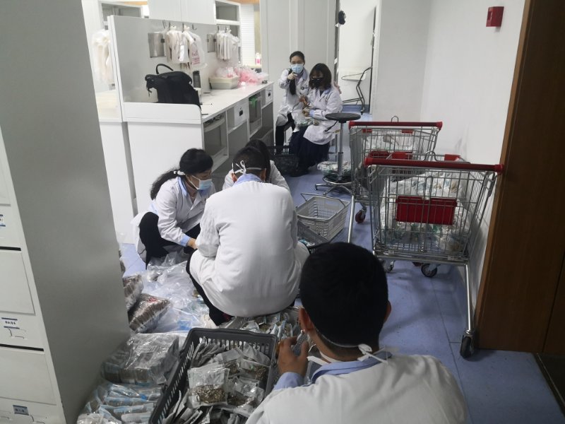 在院领导的支持下,中药房尽力挪出空间,更腾空了医院小食堂,作为中药饮片的暂存库,尤其对部分抗病毒类、祛湿类中药饮片及中成药,进行了非常规库存量的采购。
