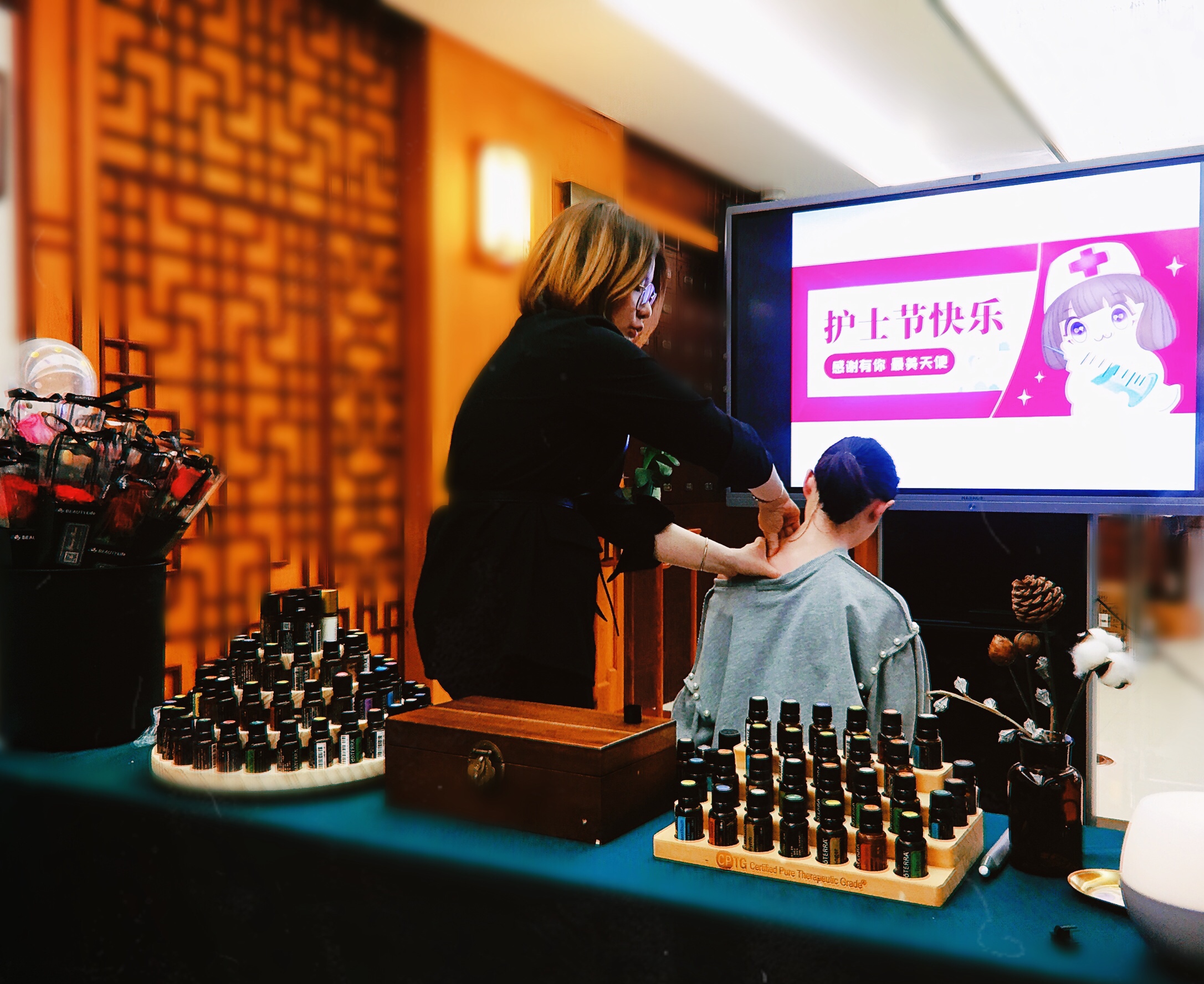 此次活动除了门诊护理团队参与,还邀请了芬芳技术理疗大师出席专业指导,首先由护士长戴清晖发言致辞,给白衣天使们送上节日的祝福和慰问。