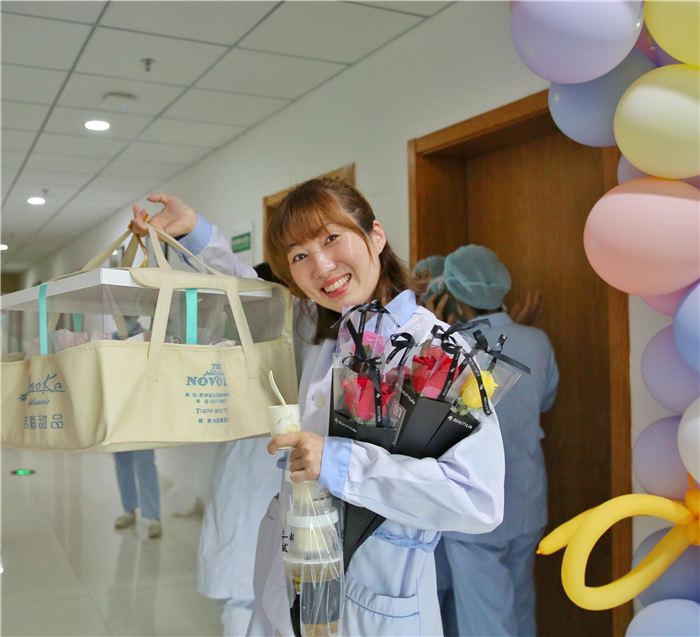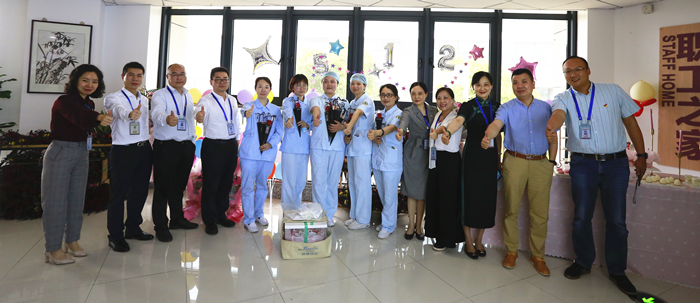职工之家大厅里精心布置了甜品台,为白衣天使们庆祝这神圣的节日,精美的蛋糕承载着甜蜜的祝福和浓浓的关爱。