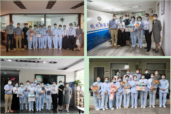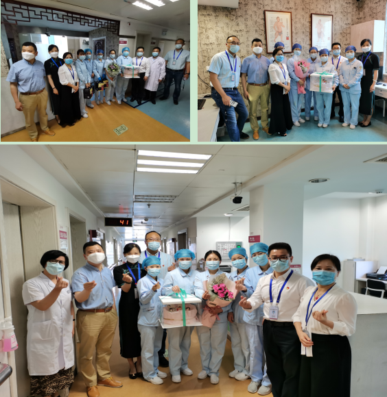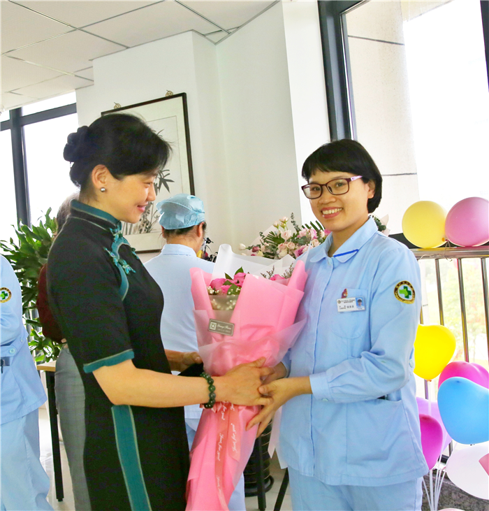 每到一处,领导们亲自将精心准备的鲜花亲切地送到护士的手中。院领导的亲切关怀和诚挚祝福犹如和煦微风,犹如明媚阳光。