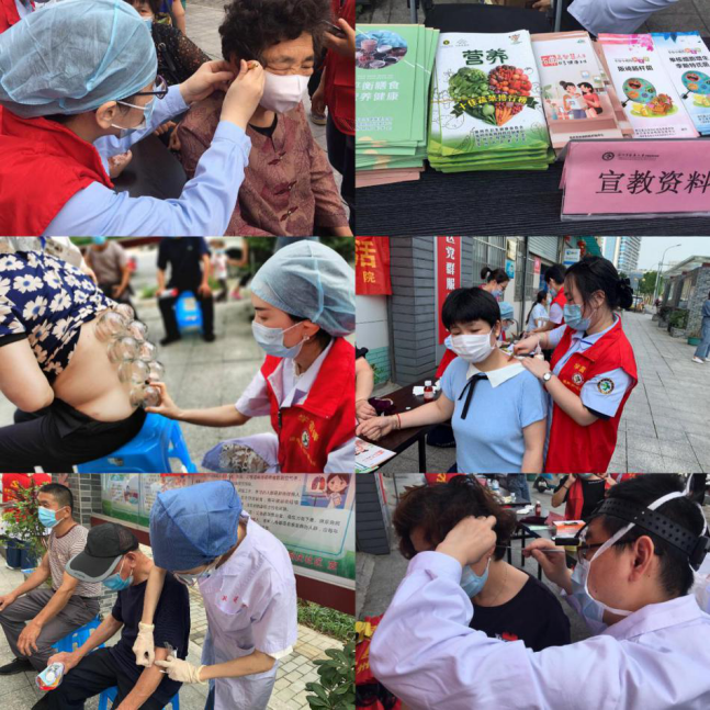 本次活动吸引了大批社区居民前来营养咨询和治疗,我院中医内科、耳鼻喉科、针灸推拿科、中医护理联合门诊、保健专家及医护人员,为社区居民进行耐心地解答,并配合耳穴埋豆、刮痧、拔火罐、针灸等中医治疗。