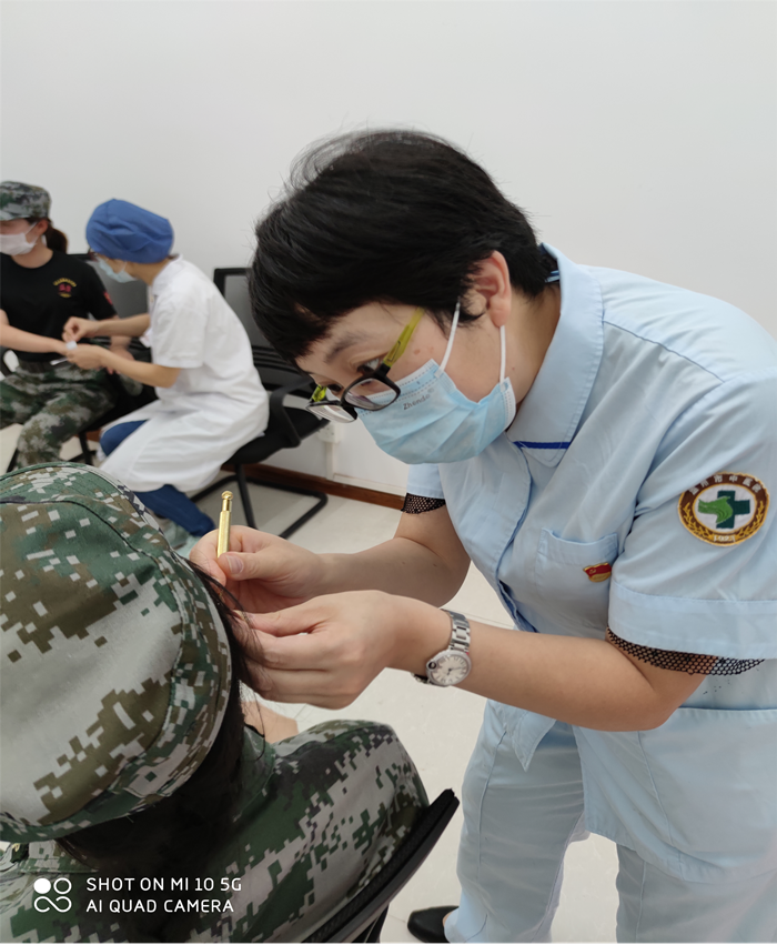 为进一步增进军民情谊,推进“军民共建”工作,2020年5月30日,温州市中医院水心景山党支部赴洞头先锋女子民兵连开展义诊活动。此次义诊有: 康复科、妇科、针灸、推拿、拔罐、耳穴埋豆等。女民兵连对温州市中医院医护人员热情周到的服务点赞。