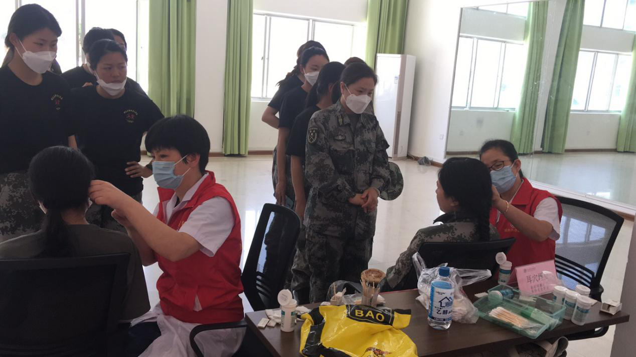 民兵训练十分艰苦,容易导致运动损伤及心理创伤,且夏日炎炎极易晒伤皮肤,因此此次义诊活动,门诊党支部特联合针推理疗科、康复科、皮肤科提供精准的服务,开展了针灸、康复等中医特色治疗,不仅免费送出常用药物,还开展了生动的心理讲座,得到了大家的一致好评。