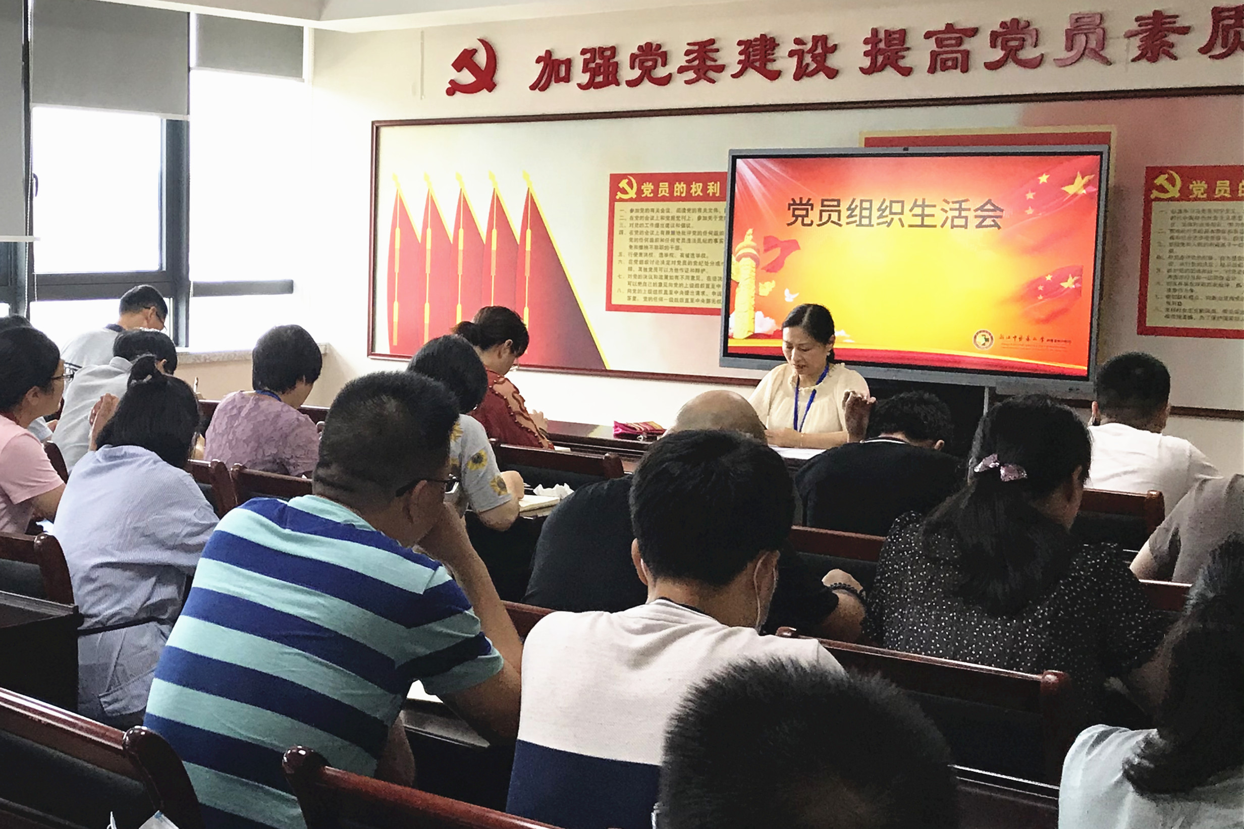 6月15日上午,温州市中医院行政后勤支部全体党员在综合楼五楼党员活动室召开全体党员大会,特邀请原温州市中医院党委副书记黄爱林同志为大家上了一堂以“增强政治意识的重要性”为主题的生动党课。