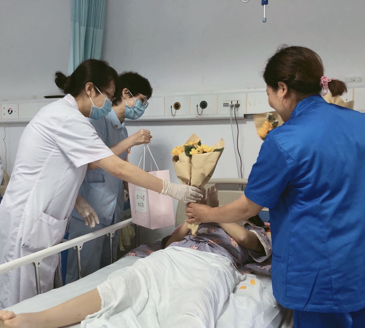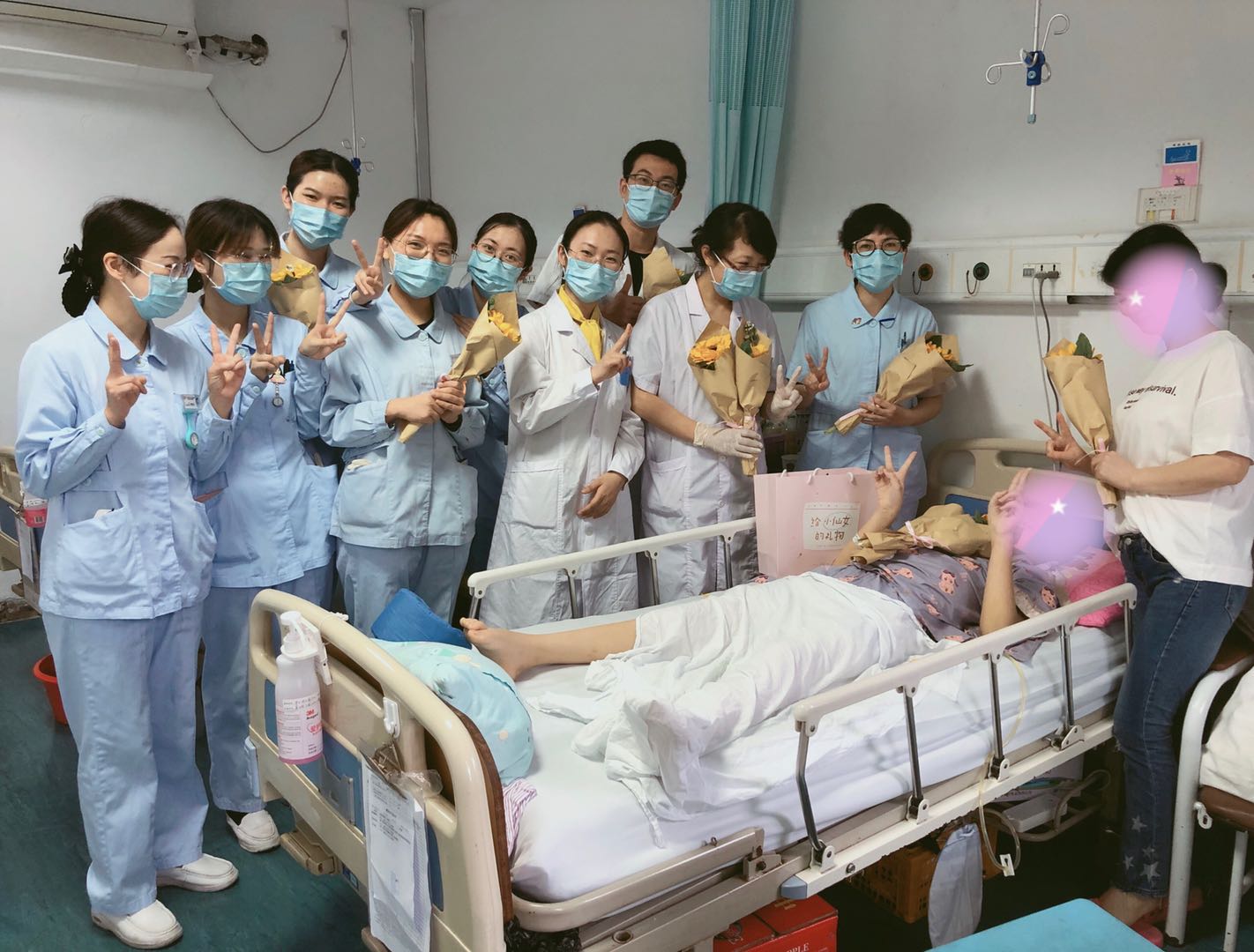 赠人玫瑰,手留余香,希望在这个年少的姑娘心里,生活的美好能掩盖病痛的折磨,白衣天使的温暖长留心间。
