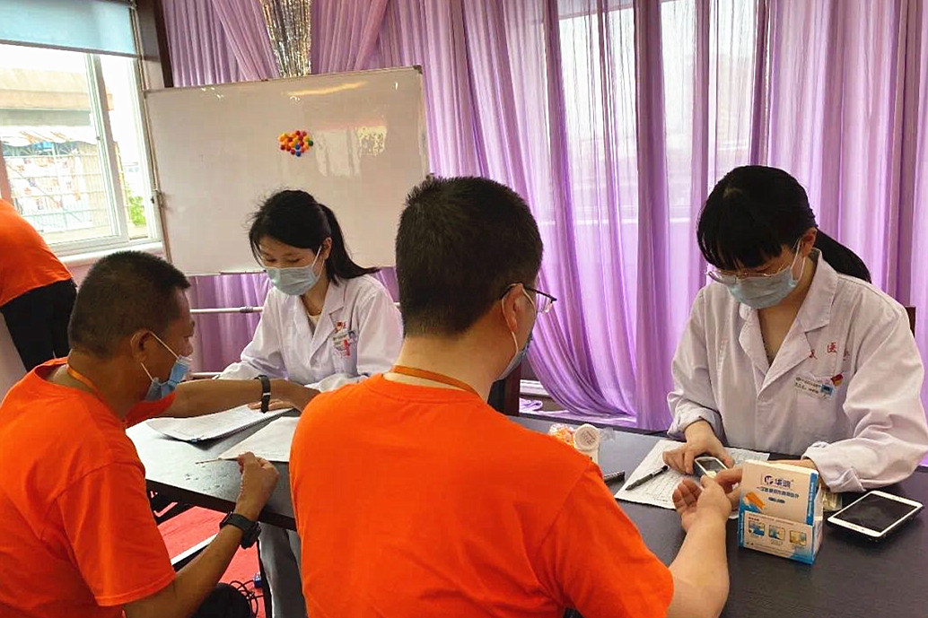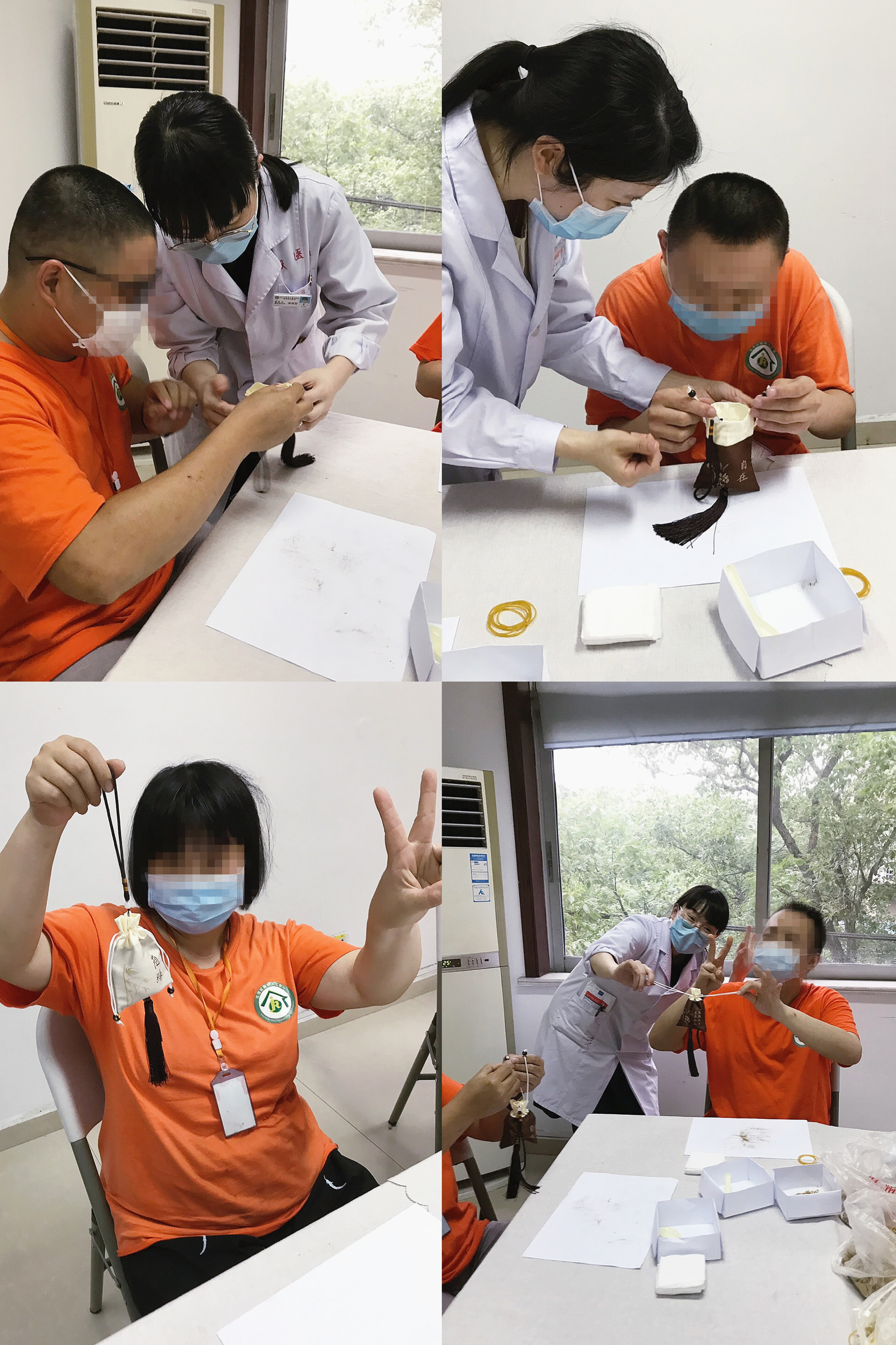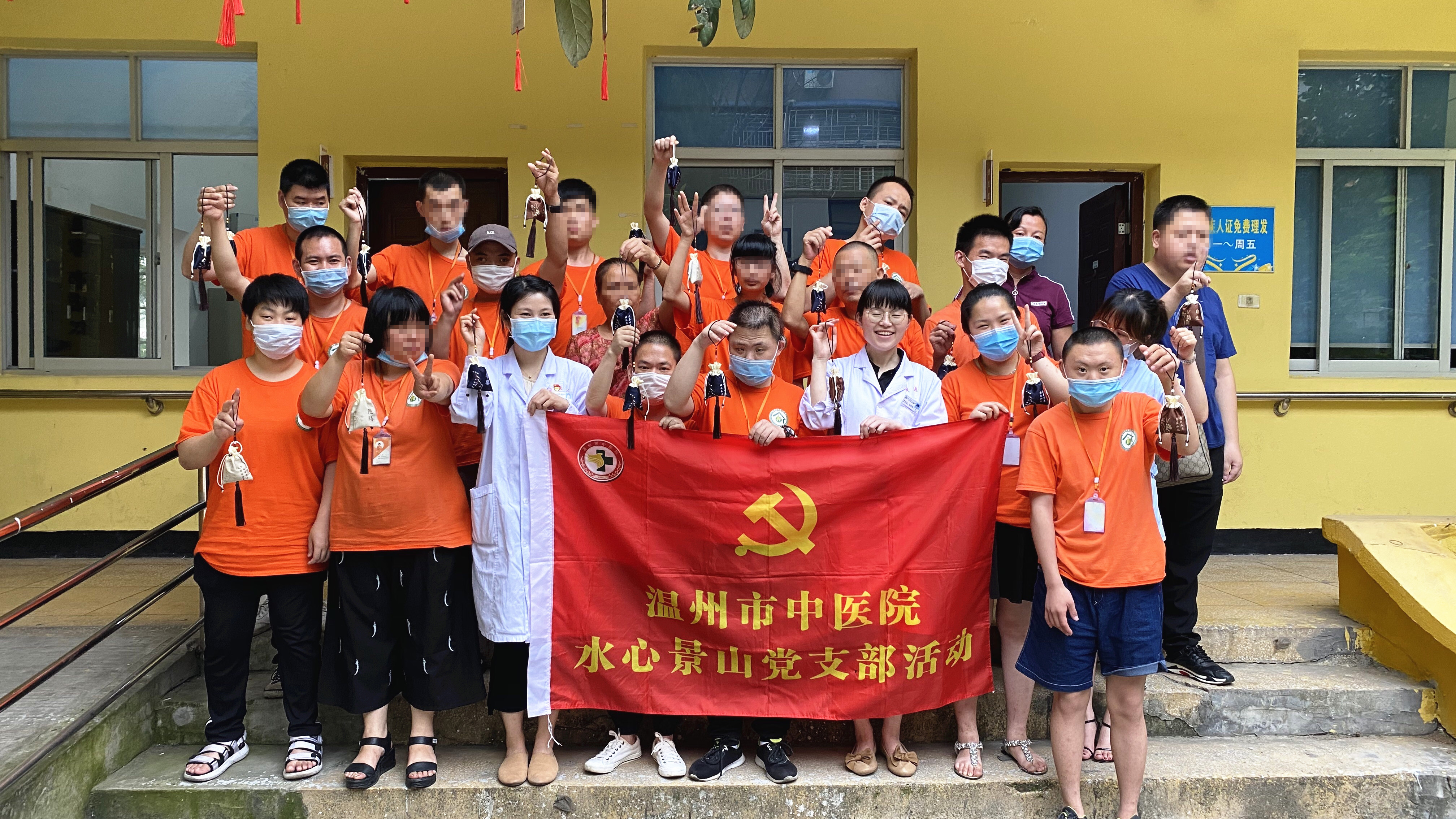 6月19日下午,温州市中医院水心景山党支部的党员们来到龙湾区青苗残疾人之家,跟这里的学员们共同开展了传承中医文化,制作香囊活动。
