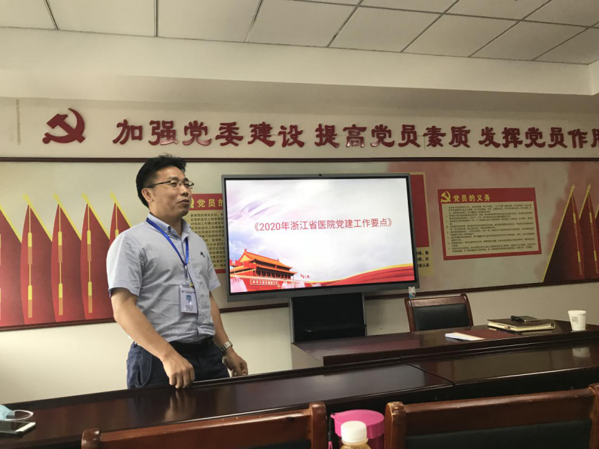 全体党员佩戴党徽参加会议,由支部书记陈丽娜同志领誓重温入党誓词,并为6月入党的党员送上生日祝福。然后进行了“党性教育一刻钟”的学习,诵读了《党章》第二章党组织制度的学习内容。深入学习了《2020年浙江省医院党建工作要点》。