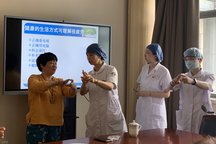 5月20日,温州市中医院门诊部邀请聋哑人参加爱眼日健康讲座《眼疲劳,生活护理》。