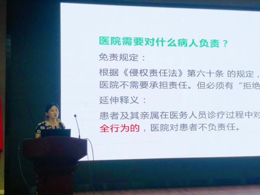 卢韵琦主任主讲法律法规与护理安全和职业安全危害及防护,通过四个案例举例平时工作中可能涉及到的法律安全和病历书写规范,让刚进入社会的实习生们知法懂法,避免医患纠纷和护理差错的发生。指导实习生们关注患者安全,有效识别职场暴露,如何更好的与患者沟通交流,注意颈椎、腰椎的保护,有效避免放射性物质。融入团队提高工作效率,积极发挥正能量作用。