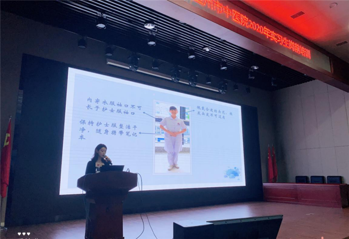 培训一开始,卢韵琦主任护师进行开场致辞,实习是护生从学生转变为临床工作者的阶梯与桥梁,岗前培训能让同学们对医院、科室及相关制度有宏观上的了解。