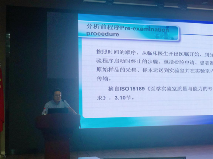检验科副主任孔万仲主讲标本的采集和物流发送注意事项,详细地讲解了各类标本的标准化采集及相关细节注意。告知实习生针对各项标本应当如何进行宣教,并强调标本的规范存放及及时送检问题。