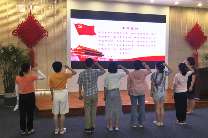 参观结束后,全体党员由大士门支部书记陈丽娜领誓,重温入党誓词,交纳党费后进行了党性教育一刻钟的学习,诵读《党章》,并重点学习了《浙江要建设好十个方面“重要窗口”》和《建设“重要窗口”贵在学深、重在谋新、成在做实》文件精神。