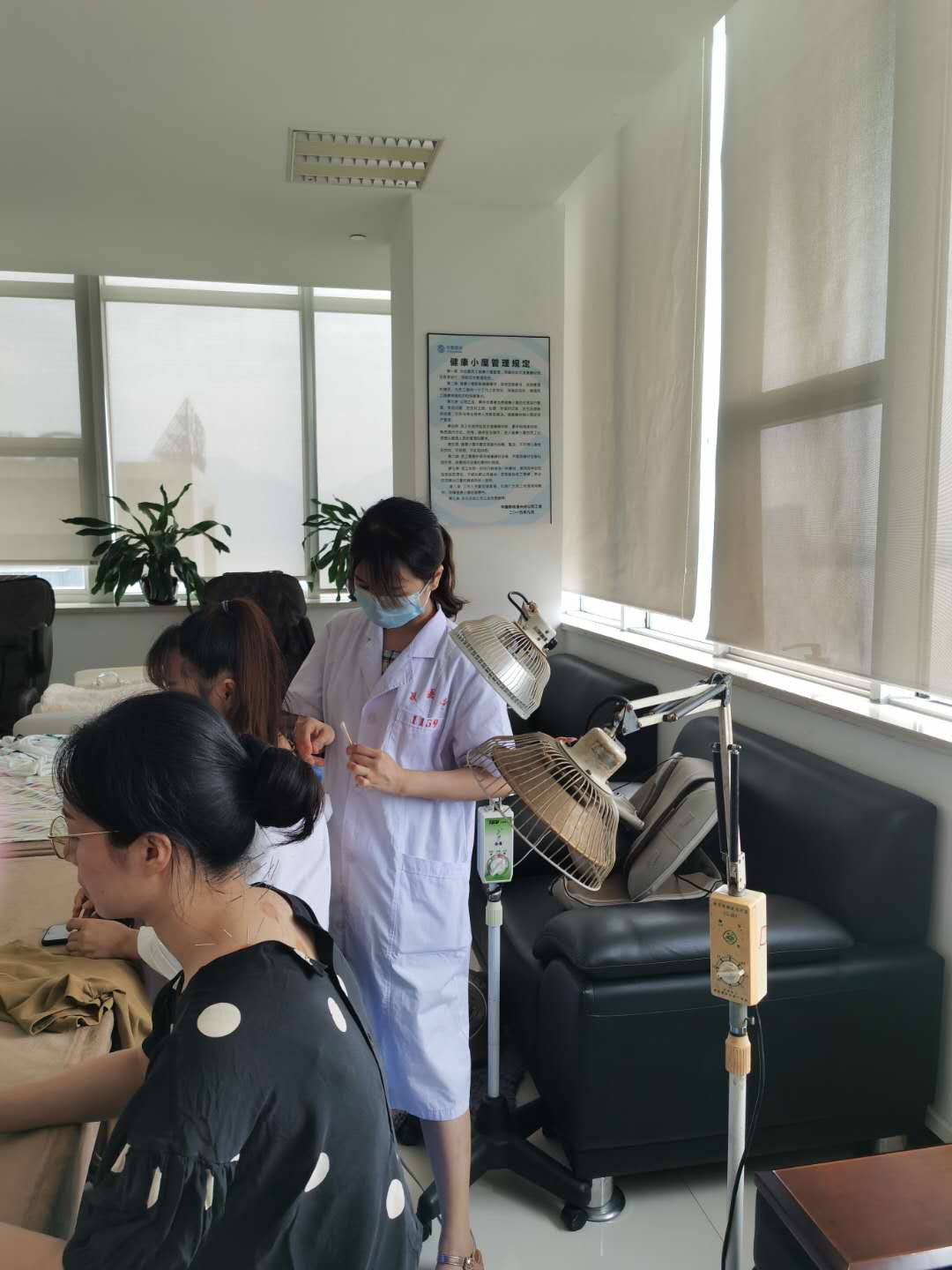 神经内科李玮主治中医师为多名移动职工做颈肩拔罐治疗