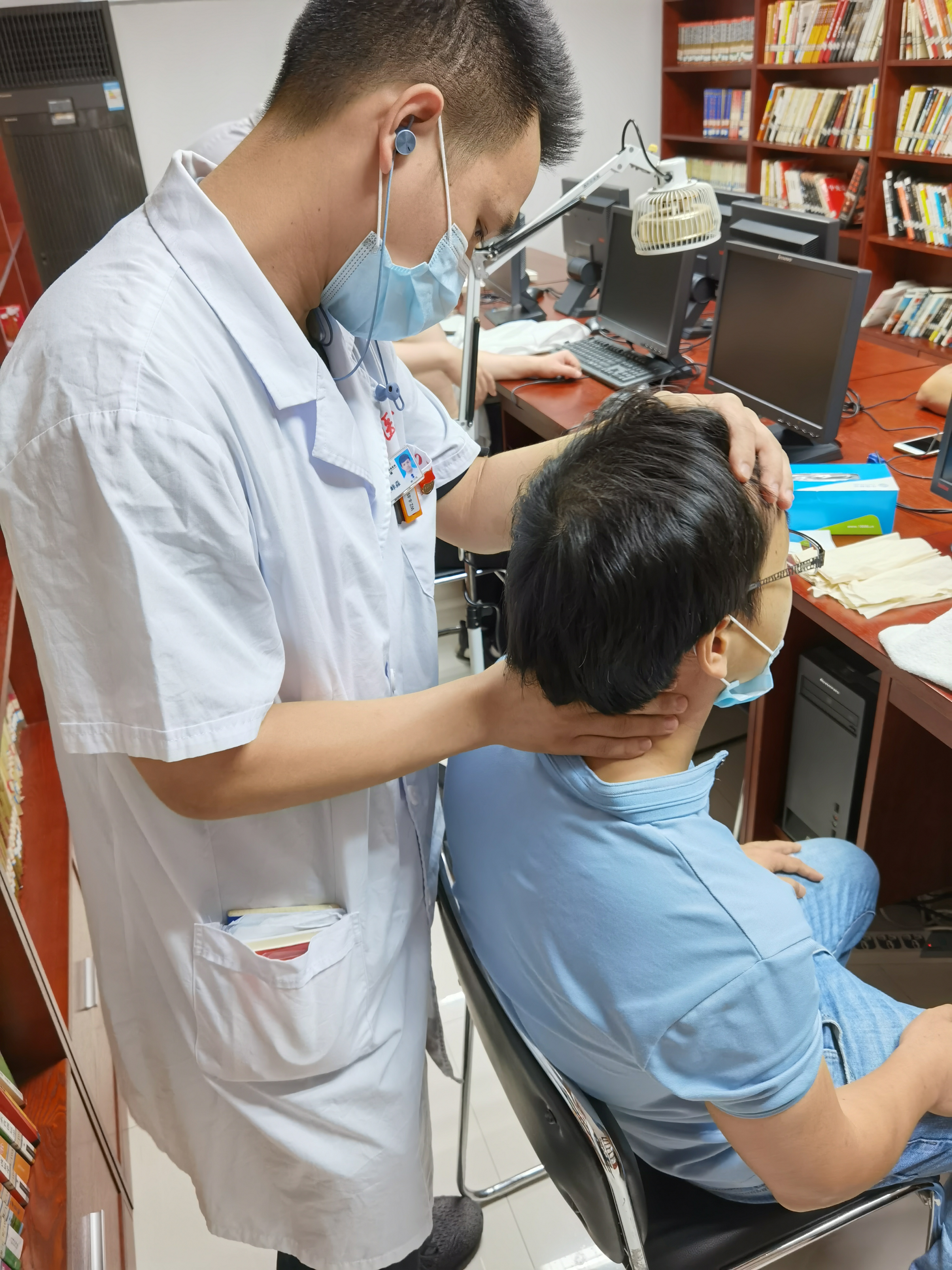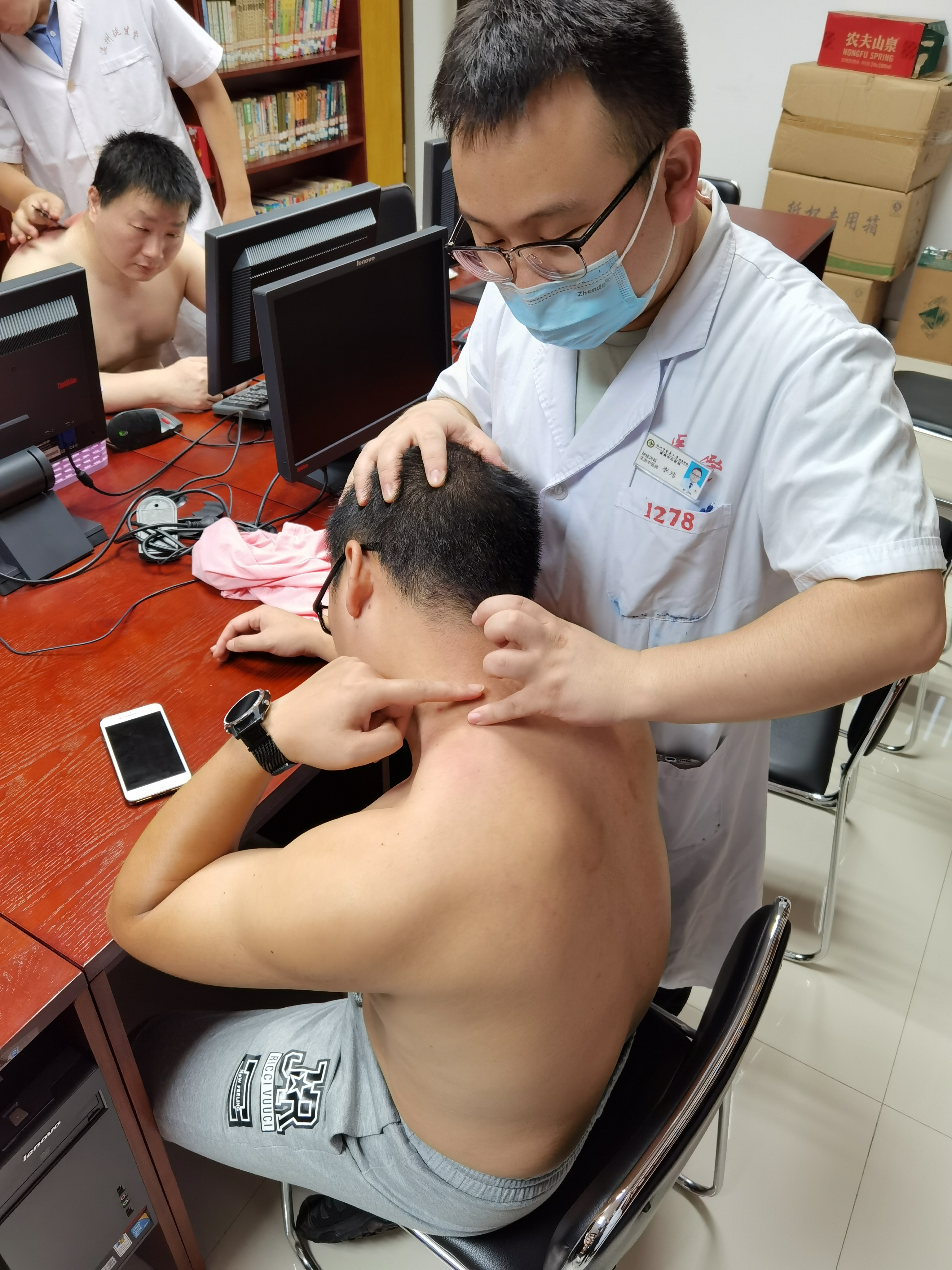 骨科吴峰淼主治中医师为移动职工做点穴、推拿等治疗