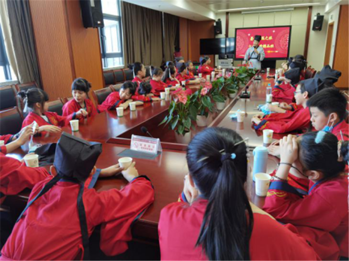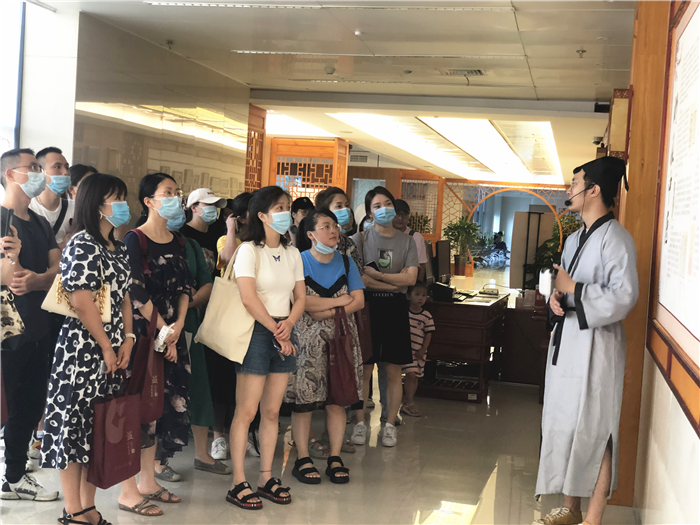 这场别开生面的中医之旅,在名医馆启程。在讲解员林立的介绍下,孩子们详细了解了温州市中医药历史和温州市中医院的发展历程,感受浓厚的中医药文化氛围。